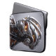 Carry your mobile workstation in a protective sleeve that looks exactly as advanced as the technology inside it. This premium laptop sleeve features a breathtaking, hyper-detailed portrait of a futuristic silver chrome cyborg. The incredibly intricate mechanical wiring and the intense, warm orange glow radiating from the android's eyes create a truly cinematic sci-fi aesthetic that stands out brilliantly against the neutral gray background.