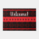 This unique black and red African-influenced pattern doormat features the word "Welcome", however, you can customize the background color, as well as the text, and change it to your family name, a different greeting, or remove it altogether. This makes a great all occasion gift for Christmas, birthdays, or housewarmings.