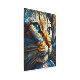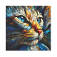 美しい猫の頭のポートレートが抽象芸術ステンドグラススタイルに提示される。ブルー、イエロー、ターコイズの色合いが織り交わされ芸術的、魅惑とディスプレイで猫の魅力を捉えエレガントる。