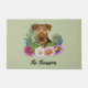 Airedale Terrier犬と花カラフル緑 ドアマット