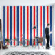 Americana stripes with inset silver stars in red, white and blue on six inch wide stripes.