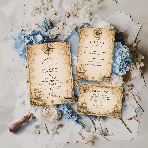 Antique Nautical Map Wedding 招待状
