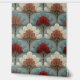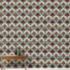 This Art Deco pattern features stylized fan-shaped florals arranged in a harmonious, repeating layout, combining soft cream tones with muted blue and bold terracotta accents. Fine linework gives each petal texture and dimension, while the symmetrical structure creates a refined, vintage-inspired rhythm. The overall effect is warm, elegant, and subtly retro—perfect for décor that blends classic geometry with a modern color palette.
