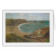 Bancroftの図書館のプレゼント: 海岸の少数の建物が付いている港の眺め。 水に小さい帆船そしてフェリー。 1900年に未知の芸術家によって絵を描かれる。