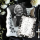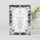 Victorian-Inspired Black and White Ornate Lace Effect and Floral Border Memorial Keepsake with Latin Cross.