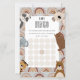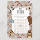 This Baby Bingo card features a sweet mix of woodland animals in soft neutral tones, perfect for a modern baby shower. Guests fill in gift guesses and race to get five in a row. A fun, interactive activity that keeps everyone smiling and engaged.