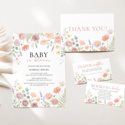 Baby In Bloom Blush Teal Spring Floral Shower Arch 招待状