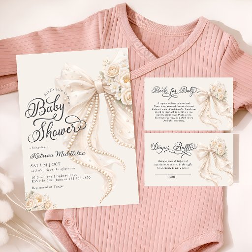 Baby in Bloom Bow Floral Baby Shower Welcome ポスター