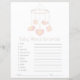 Nesting Party Baby Word Scramble game sheet for baby shower game. This design features a pink and yellow baby mobile with birds, flowers, and a heart. The simple baby mobile art is perfect for a boho baby shower or nesting party. Visit our shop to view the entire Baby Mobile Nesting Party collection.