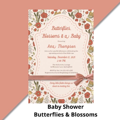 Elegant and poetic baby shower design featuring delicate butterflies and soft blossoms. Perfect for a chic and minimalist celebration honoring the mommy-to-be. Soft pastel colors and floral motifs make it ideal for welcoming a new baby with love and style.