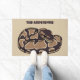 このウェルカムマットは、ダークブラウンとタンのコイル状ボールパイソンのヘビのリアルなスタイルイラストレーションを描く。ダークブラウンパーソナライズされたレタリングで名前を付ける準備ができている。ペット素晴らしの蛇の飼い主に贈り物をする。