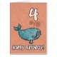 ハッピーバースデーのクジラ-年齢の特定の誕生日の挨拶状のかわいいザトウクジラ4歳の。 中の文字: "希望あります時間のクジラが!"