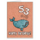 ハッピーバースデーのクジラ-年齢の特定の誕生日の挨拶状のかわいいザトウクジラ53歳の。 中の文字: "希望あります時間のクジラが!"