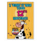 "私は「集めます」それをでしたあなたの第12誕生日!" お誕生日ケーキの挨拶状を握っているおもしろいのb日牛。