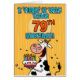 "私は「集めます」それをでしたあなたの第79誕生日!" お誕生日ケーキの挨拶状を握っているおもしろいのb日牛。