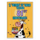 "私は「集めます」それをでしたあなたの第81誕生日!" お誕生日ケーキの挨拶状を握っているおもしろいのb日牛。