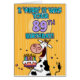 "私は「集めます」それをでしたあなたの第89誕生日!" お誕生日ケーキの挨拶状を握っているおもしろいのb日牛。