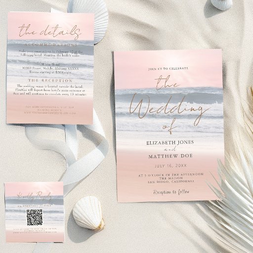 Beach Sunset Seaside/Oceanside Wedding Details エンクロージャーカード