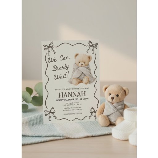 Add a sweet touch to your baby shower with this Bear Books for Baby Card! Featuring a cute watercolor teddy bear in soft beige tones, it invites guests to bring a book instead of a card. Easily personalize the text, choose from premium papers and sizes, and enjoy fast printing and shipping. A perfect match for neutral baby shower theme!