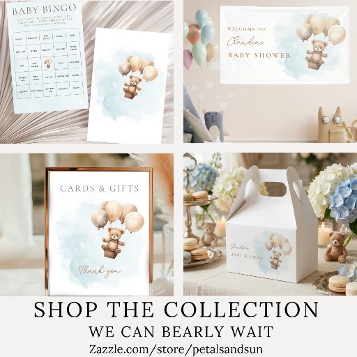 Get ready to celebrate — we can bearly wait for baby’s arrival! This adorable baby shower banner features a sweet hand-painted watercolor teddy bear holding beige balloons, floating against a dreamy blue sky sprinkled with soft watercolor stars. A perfect mix of whimsy and charm, it fits beautifully with neutral, modern, and gender-neutral baby shower themes.