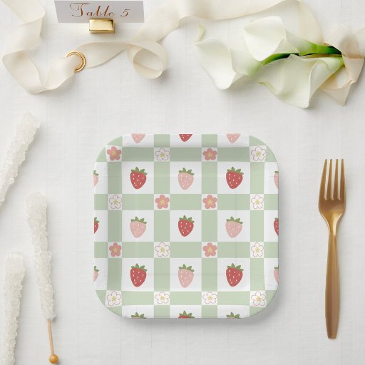 The front features the charming pastel green gingham and strawberry design, along with a space for a personalized message. The back is reserved for your favorite photo of the birthday child, making it a perfect keepsake!