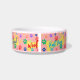 This is a fun, colorful bowl for your best friend with multi-colored paws, dog bones and cute words which are customizeable including your pet's name.
