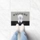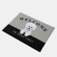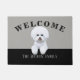 Bichon Friseのイラストレーションを特色にするかわいい玄関マット。 カスタマイズ可能な背景の色および文字。 Bichon犬の恋人またはFriseの所有者のための完全なギフト。