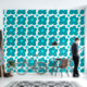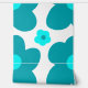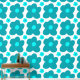 Big retro blue flowers pattern wallpaper. Teal and aqua blue colors on a white background.