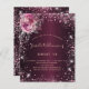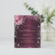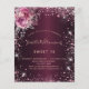 For an elegant Sweet 16 (or any age) birthday. A burgundy faux metallic looking background color. Decorated with pink faux glitter dust and florals. Personalize and add a name, age and party details. The name is written with a hand lettered style script