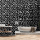 Peel And Stick Vinyl Wallpaper home decor accessory, wall art, wall cover and wall treatment product printed with Black And Gray Retro Floral Art Seamless Pattern original hand drawn graphic design artwork illustration by TheFabricSeal print on demand shop at Zazzle.com #ZazzleMade ©️Original. https://www.zazzle.com/store/thefabricseal
