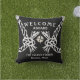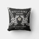 アウトドア装飾用クッションへようこそ、白い背景に薄いグレーのロープの輪郭を付け、文字。「このテンプレートをカスタマイズ」機能を使用して、ボートに合わせてボート名文字を追加できます。