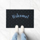 This unique black and blue Tribal-influenced pattern doormat features the words "Welcome" on the front, but you can customize that text and change it to your family name, a different greeting, or remove it altogether. This makes a great all-occasion gift for Christmas, birthdays, or housewarmings.