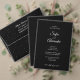 A clean minimalist wedding invitation design featuring elegant white style text on a deep black background. The layout is simple, modern, and focused on refined typography, making it suitable for contemporary weddings with a classic luxury aesthetic.