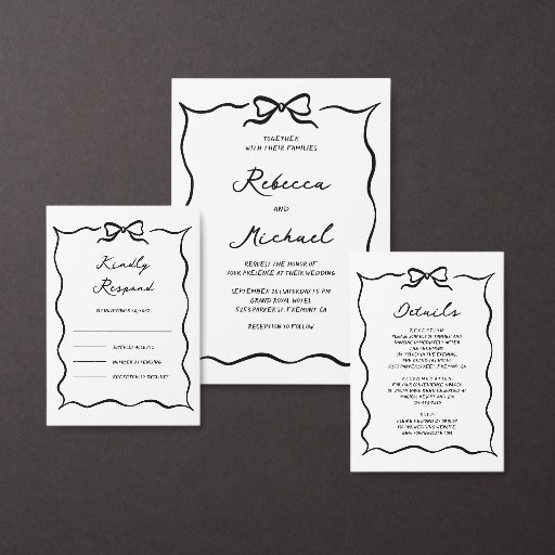 Black & White Hand Drawn Bow Wedding テーブルナンバー