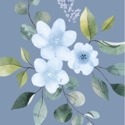 This elegant wedding invitation design features soft watercolor florals in soothing shades of dusty blue, white, and muted greenery. The calm blue background paired with airy watercolor flowers creates a refined, graceful look that suits boho, modern, and elegant wedding themes alike.