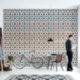 A delicate medley of blue and coral florals comes together in this charming tile design. Balanced with soft symmetry and botanical details, it’s inspired by Mediterranean artistry and brings a vibrant yet soothing touch to any interior.
