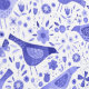 Blue and White Watercolor Birds and Flowers 壁紙