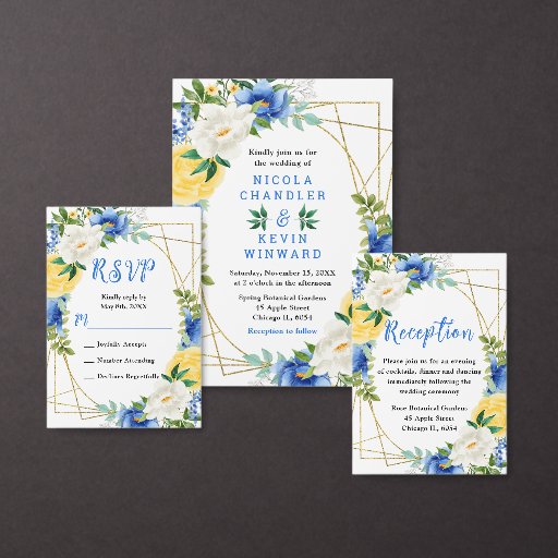 Blue and Yellow Floral Wedding コーヒーマグカップ