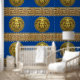 BLUE Designer壁紙のメドゥーサとギリシャ鍵金ゴールド