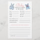Create a keepsake the parents will cherish with this Baby Predictions and Advice card. Designed with a watercolor clothesline featuring denim and pink baby clothes, this card invites guests to guess baby details and share heartfelt advice. A sentimental activity that fits beautifully into your rustic denim baby shower décor.