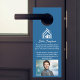This professional realtor door hanger is custom made with your real estate company name along with modern cursive script for house selling documents. These chic custom blue realty business promotional items feature a house logo image for home builder or realty listing agent company marketing.