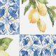 Elegant watercolor french country blue tile and lemon pattern wallpaper to decorate your home with grace.