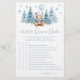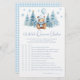 Add a touch of elegance to your winter themed baby boy shower with our sophisticated "Over or under" game. Featuring a charming teddy bear wearing winter hat and a scarf, holding blue balloon, surrunded by pine trees and snwflakes, this delightful activity is perfect for entertaining your guests and creating lasting memories. Ideal for adding fun and excitement to your special celebration!