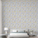 Blue Yellow Mid-Century Abstract Cat Pattern 壁紙