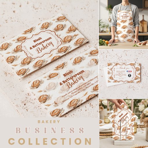 Warm buttercream tones, hand-illustrated artisan bread, and a delicate scalloped frame create a nostalgic bakery aesthetic that feels both refined and inviting. The soft blush palette paired with golden pastry artwork evokes the comfort of fresh croissants, rustic loaves, and cozy neighborhood charm.