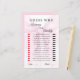 Add laughs to your baby shower with this “Guess Who: Mommy or Daddy” game card! Designed with a soft blush pink watercolor bow and elegant typography, it’s the perfect mix of classy and fun. Guests vote with lips or mustache icons—then tally the totals for a winner!
