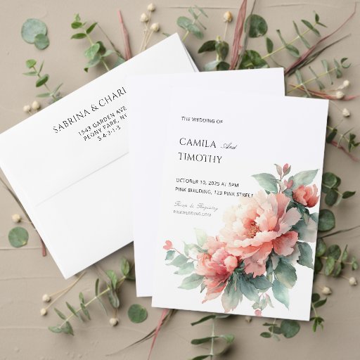 Blush Pink Coral Peony Wedding Guest Book Sign フォトプリント (正面)