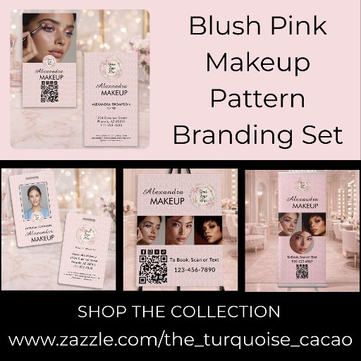 Blush Pink Black Script Font Your Logo Here Social Icons QR Code Photo Makeup Business Card.