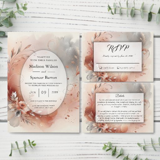 Blushing Petals and Silver Swirls Wedding 出欠カード