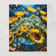 Florero sobre mesa, con paisaje en la noche de fondo, en colores luminosos. Tamaño 8,000 x 8,000, pixeles, 80 pulgadas. Arte digital en paisaje.